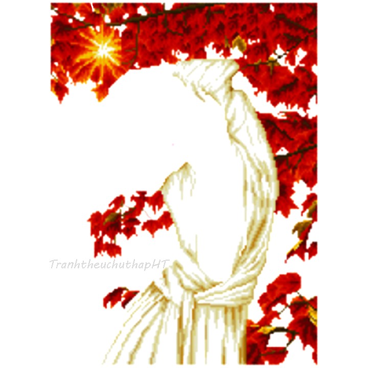 Mẫu này đính đá phần cây lá, khăn áo cô gái… trên nền vải 3D in sắc nét, sáng đẹp. Đặc biệt do tự tay mình làm thì thật thú vị.