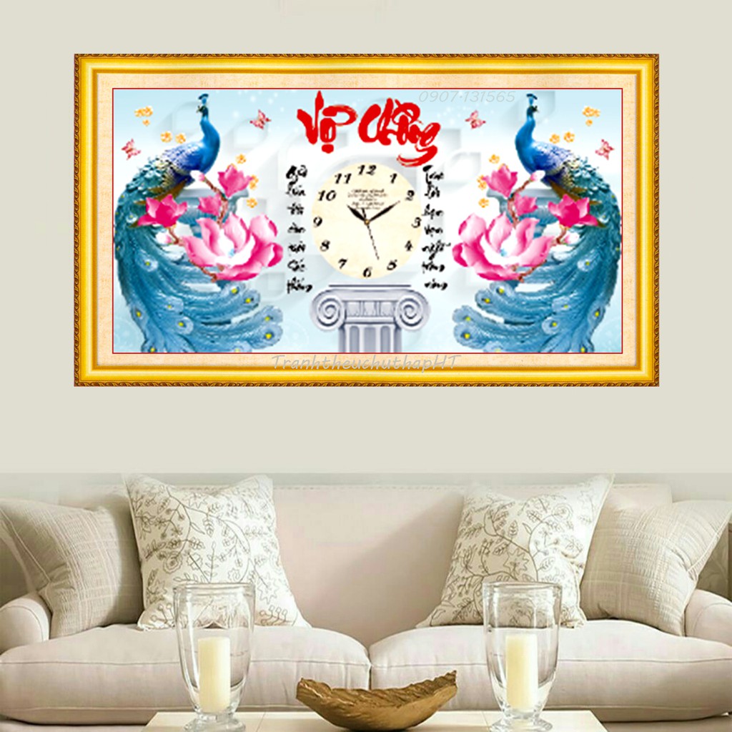Mẫu này rất đẹp, thêu chim công, chữ và hoa lan trên nền vải 3D in sắc nét, rõ, đẹp, màu sắc tươi sáng, sang trọng. Phần thêu như hình đính kèm