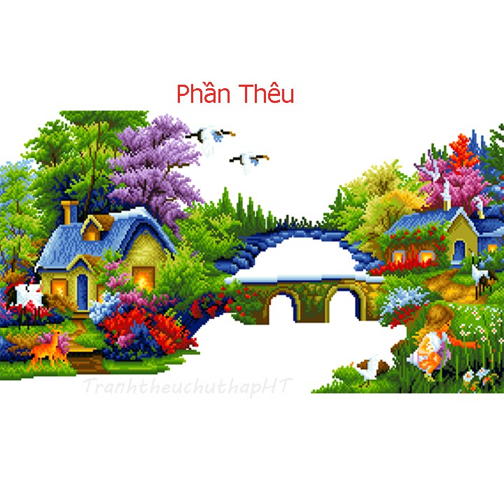 Tranh thêu chữ thập Phong cảnh Tổ ấm hạnh phúc LV3145 - tự thêu