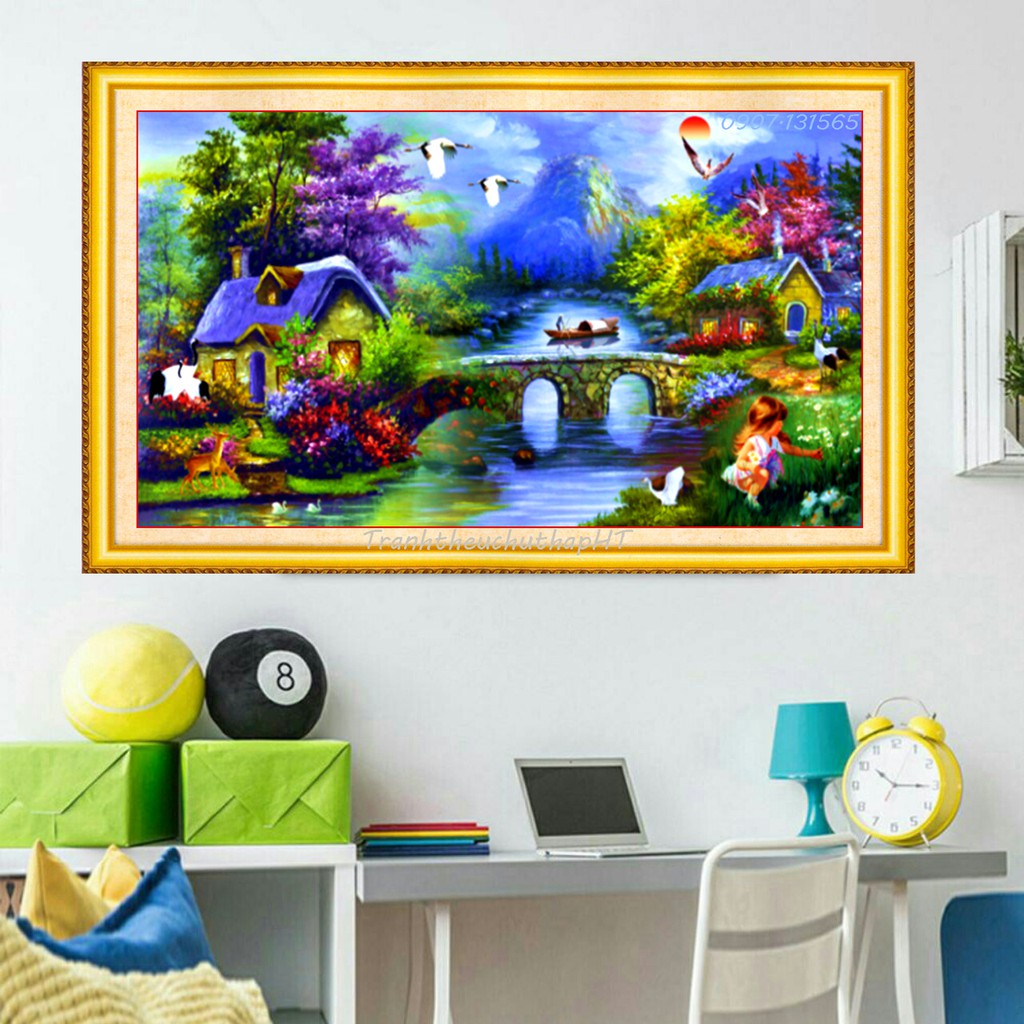 Sở thích & Sưu tầm > Dụng Cụ May Vá || Tranh đính đá - Tranh thêu chữ thập Phong cảnh Tổ ấm hạnh phúc LV3145, LV196 - tự thêuCòn hàng