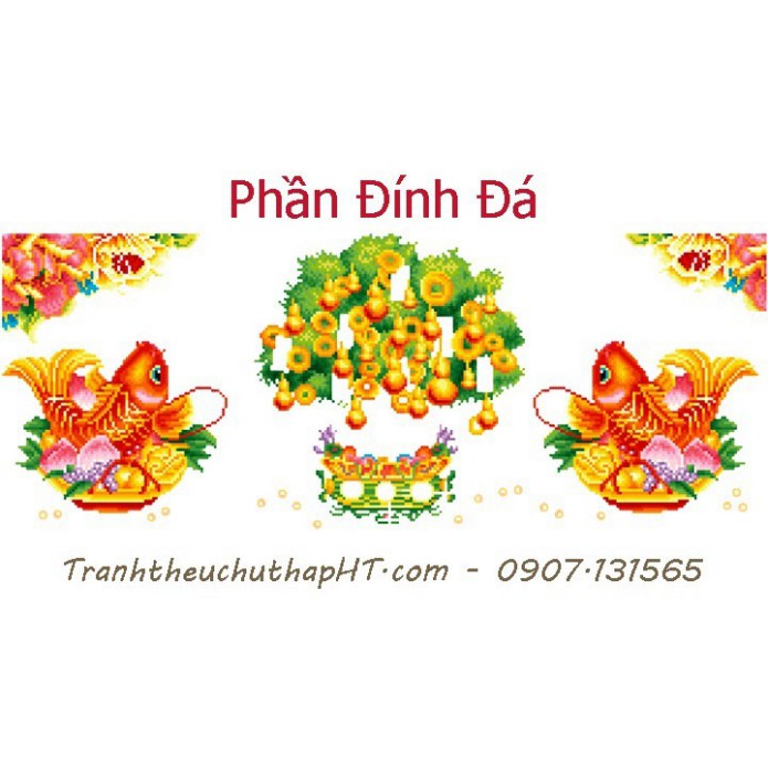 Sở thích & Sưu tầm > Dụng Cụ May Vá || Tranh đính đá, Tranh thêu chữ thập Phát Tài Phát Lộc (cây tiền 2 con cá) VS115 - tự thêu, tự đínhCòn hàng