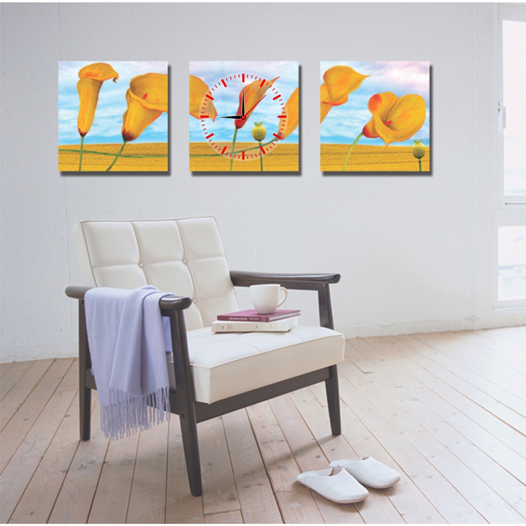 Tranh đồng hồ kim trôi treo tường phòng khách, văn phòng, tranh đồng hồ bộ ghép treo tường độc đáo