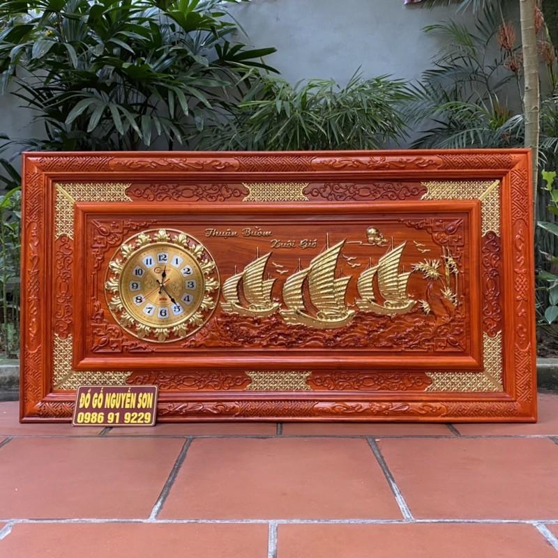 Giới thiệu Tranh đồng hồ thuận buồm xuôi gios gỗ hương kích thước 67*127,dày 4cm hoàn thiện dát vàng ĐÀI LOAN loại 1