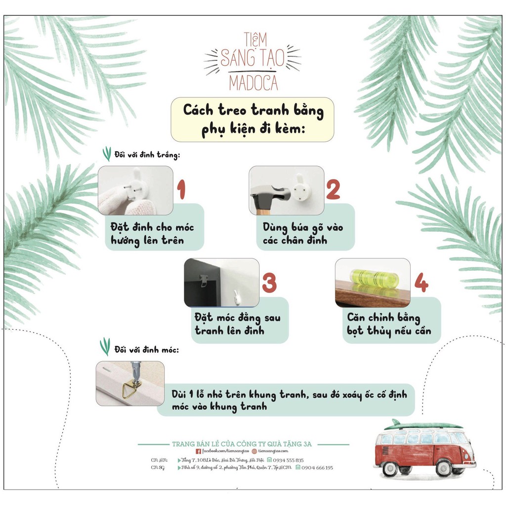 - - Móc và vít treo tranh khi hoàn thành sản phẩm