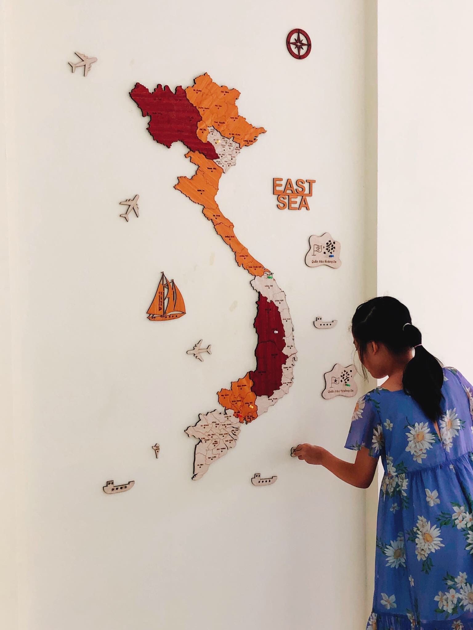 - Bộ bản đồ gỗ 3D Việt Nam bằng gỗ được khắc chi tiết 63 tỉnh thành của Việt Nam, cùng với đó là các mảnh ghép của 2 quần đảo Hoàng Sa và Trường Sa, Côn Đảo, Phú Quốc.