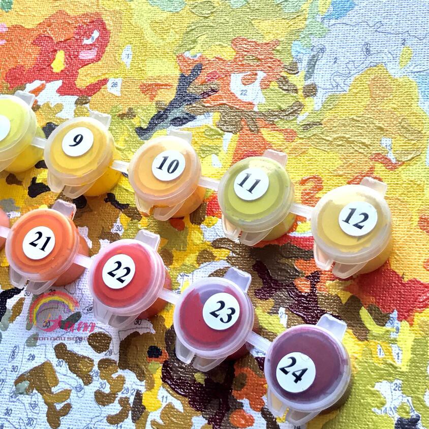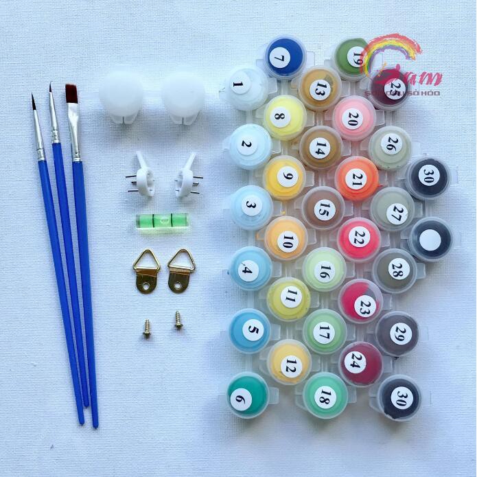 ▪️ Một bộ màu Acrylic đã được mã hóa theo tranh và đánh số tương ứng với các ô màu trên tranh.