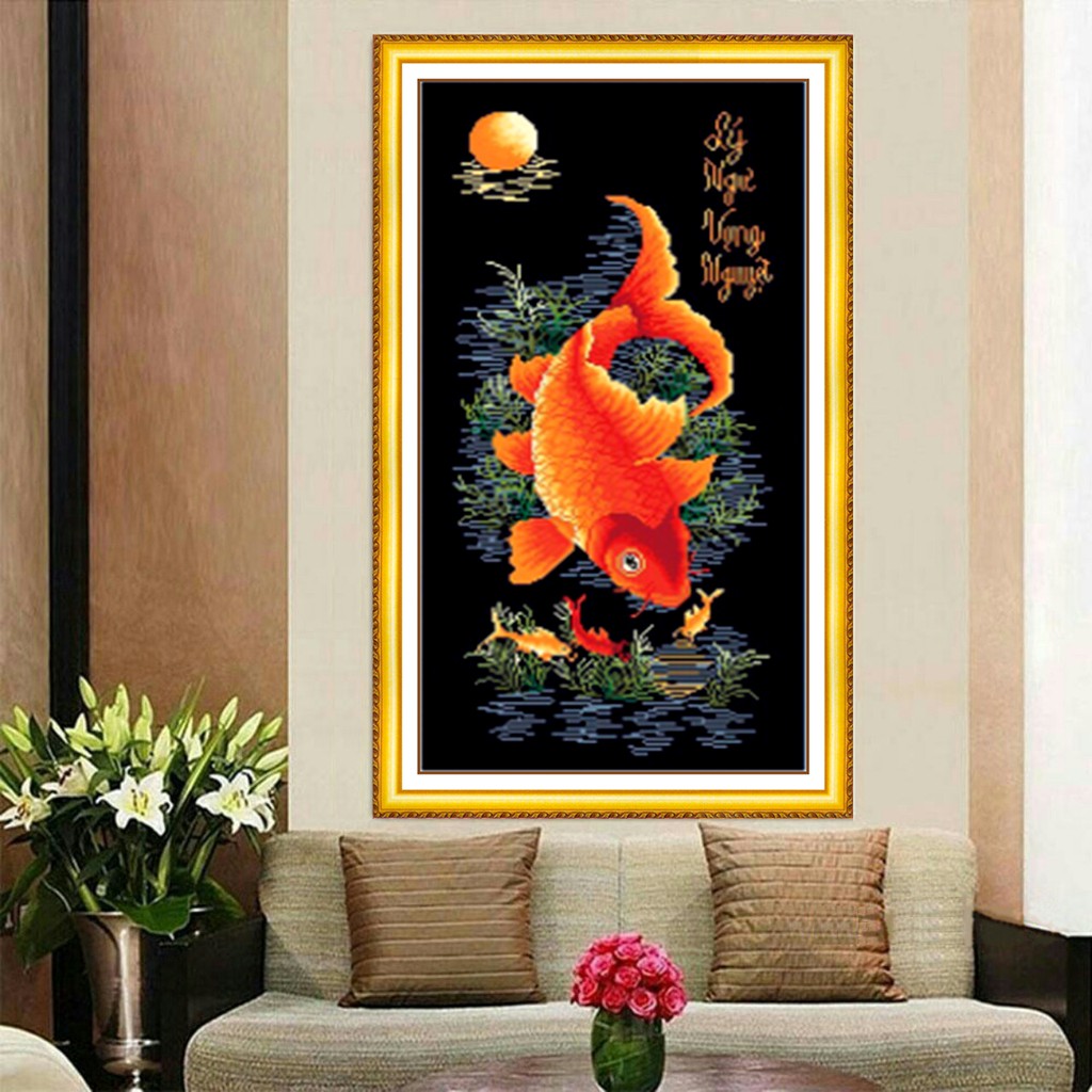 Sở thích & Sưu tầm > Dụng Cụ May Vá || Tranh thêu cá chép - lý ngư vọng nguyệt LV3150 - tự thêuCòn hàng