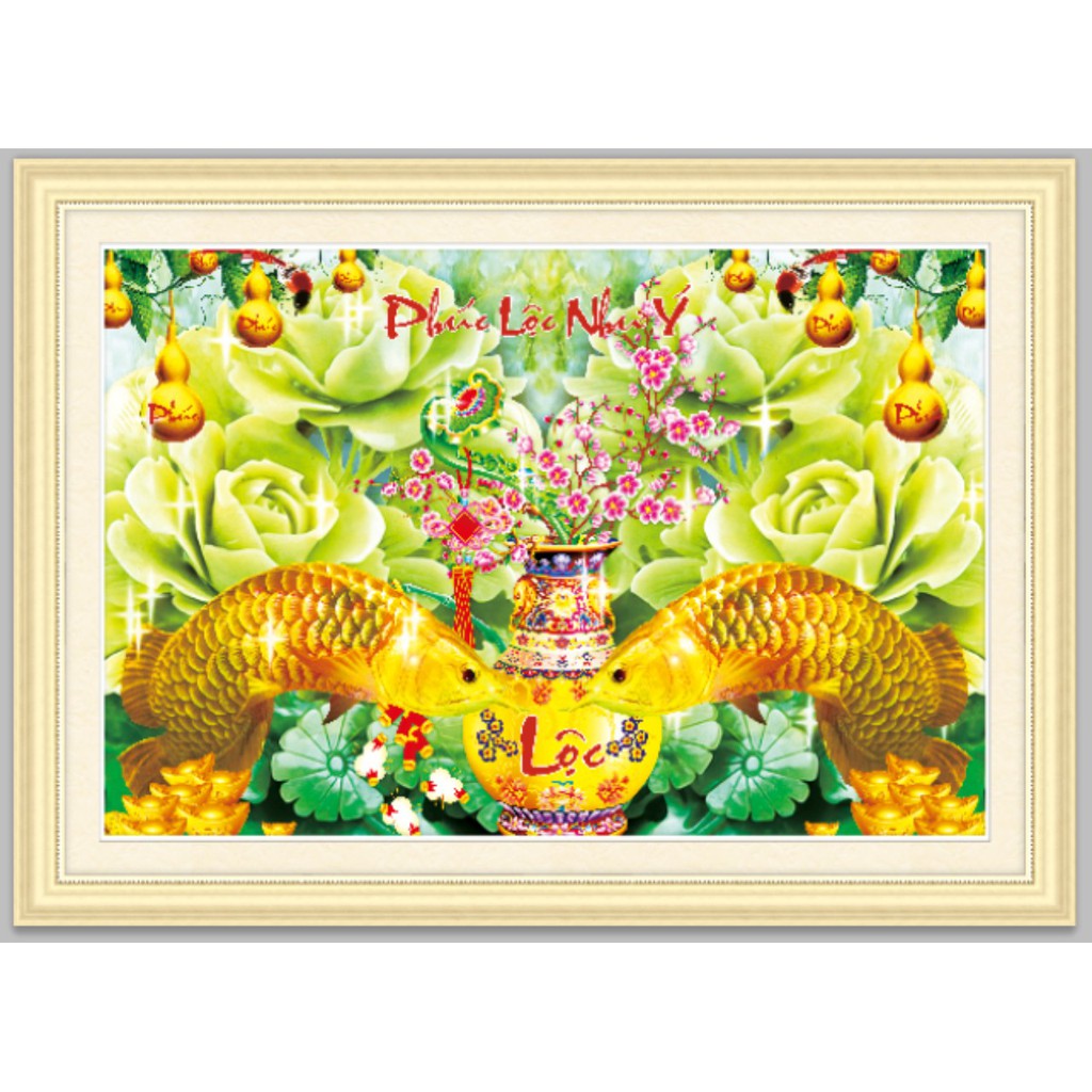 Tranh thêu cá chép Phúc Lộc Như Ý 3D Ailuo AL53569_Chưa thêuBộ nguyên liệu: Kim , Chỉ, Vải, Hướng Dẫn thêu