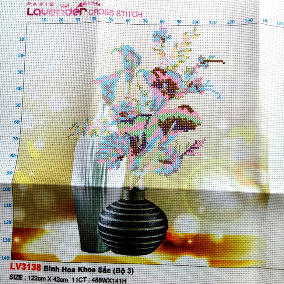 Giới thiệu Tranh thêu chữ thập 3 bình hoa nghệ thuật LV3138 (tự thêu)