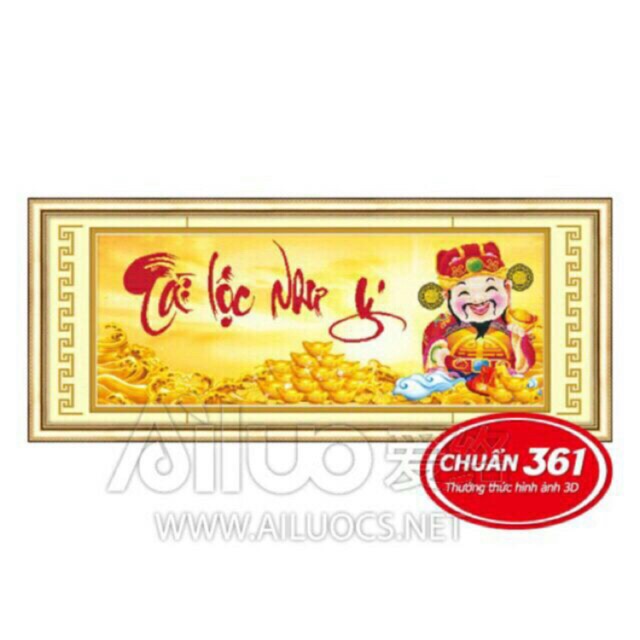 Giới thiệu Tranh thêu chữ thập 3D TÀI LỘC NHƯ Ý -THẦN TÀI( 53282)110×42cm chưa thêu.