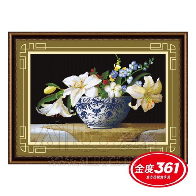 Sở thích & Sưu tầm > Dụng Cụ May Vá || Tranh thêu chữ thập 5D >BÌNH HOA LY TRẮNG> 31206,65x45cm >chưa thêuCòn hàng