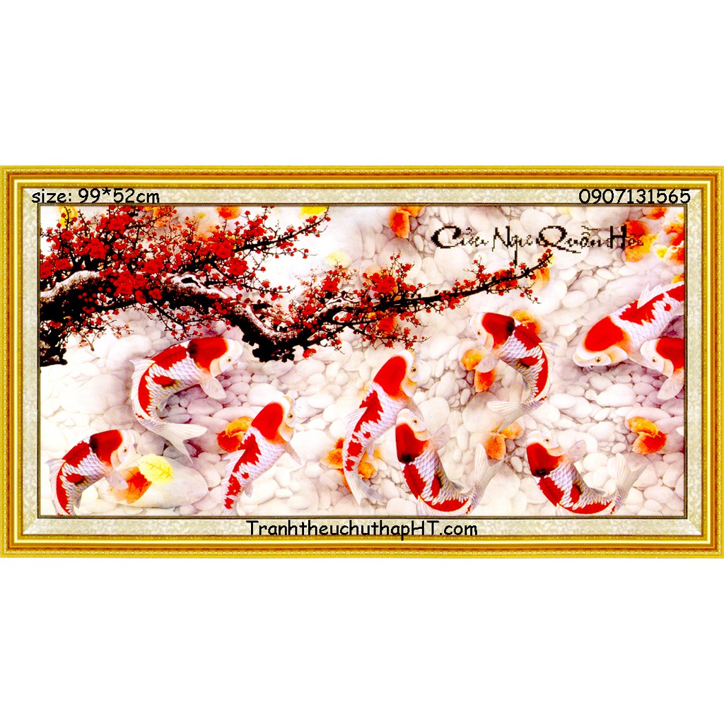 Tranh thêu chữ thập 9 con cá “Cửu ngư quần hội” 130*65cm (tự thêu)