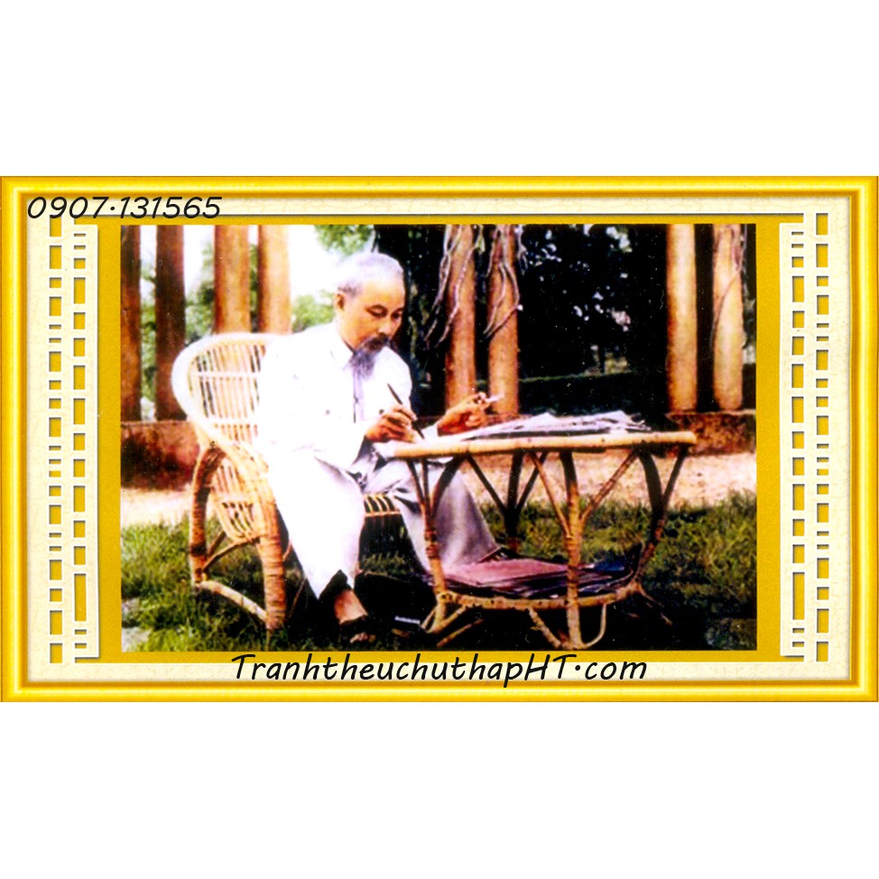 Tranh thêu chữ thập Bác Hồ đang làm việc 222072 - tự thêuMẫu này rất đẹp, thêu 100% các chi tiết trên nền vải trắng in sẵn, màu sắc trang nhã, sang trọng.