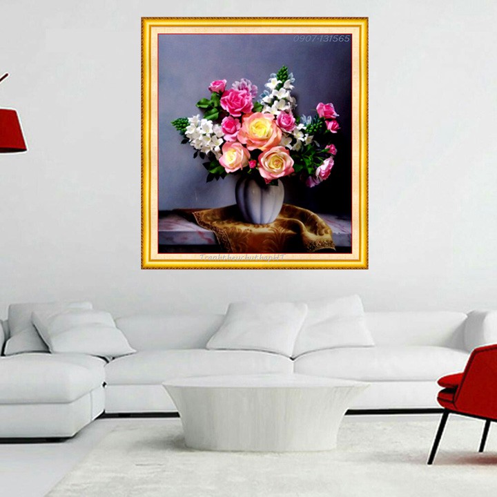 Tranh thêu chữ thập bình hoa nghệ thuật LV3047 - tự thêu