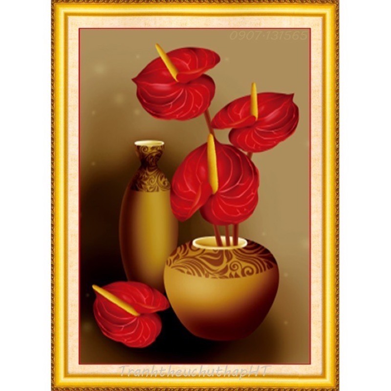 Sở thích & Sưu tầm > Dụng Cụ May Vá || Tranh thêu chữ thập Bình hoa hồng môn 3D LV3280_ Chưa thêuCòn hàng