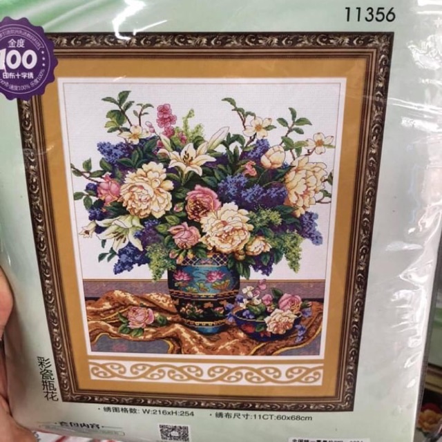 Sở thích & Sưu tầm > Dụng Cụ May Vá || Tranh thêu chữ thập Bình Hoa đẹp 11356 (60x68) chưa thêuCòn hàng