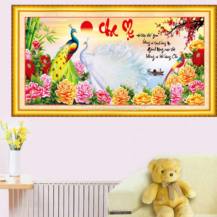 Sở thích & Sưu tầm > Dụng Cụ May Vá || Tranh thêu chữ thập cha mẹ chim công mẫu đơn LV3061 - size: 88*43cm (tự thêu)Còn hàng