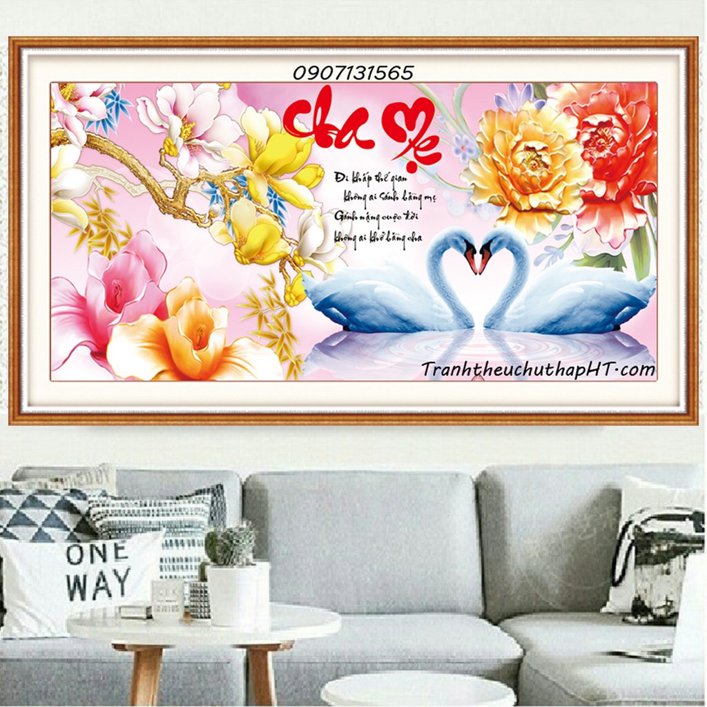 Tranh thêu chữ thập Cha mẹ LV3065 - tự thêu