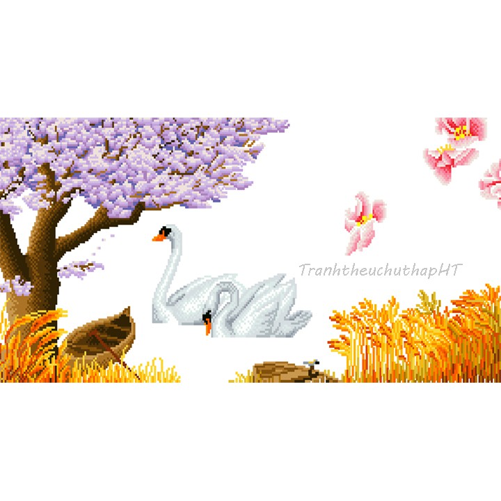Mẫu này rất đẹp, thêu đôi thiên nga, cây lá và hoa trên nền vải 3D in sắc nét, rõ, đẹp, màu sắc tươi sáng, sang trọng (phần thêm như hình đính kèm).
