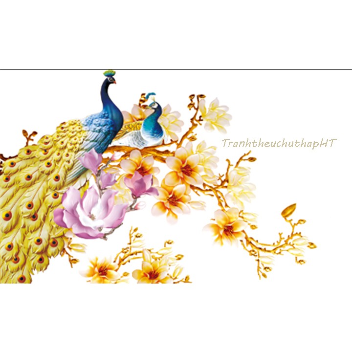 Mẫu này rất đẹp, thêu chim công, cây lá và hoa trên nền vải 3D in sắc nét, rõ, đẹp, màu sắc tươi sáng, sang trọng (phần thêm như hình đính kèm).