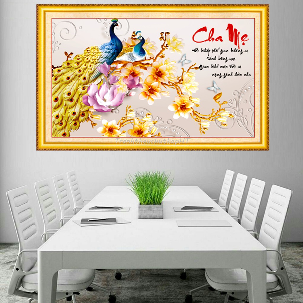 Tranh thêu chữ thập Cha mẹ LV3171 - tự thêu