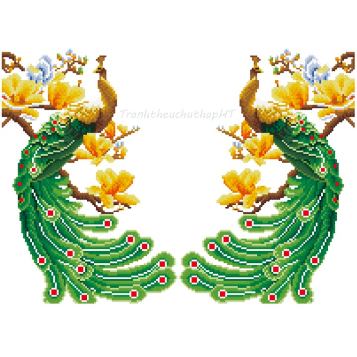 Mẫu này rất đẹp, thêu chim công, cây lá và hoa lan trên nền vải 3D in sắc nét, rõ, đẹp, màu sắc tươi sáng, sang trọng (phần thêm như hình đính kèm).
