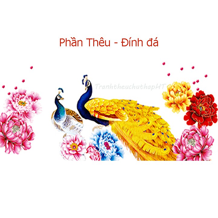 Mẫu này rất đẹp, thêu toàn bộ hoa mẫu đơn và chim công trên nền vải 3D in sẵn (phần thêu như hình đính kèm), màu sắc tươi sáng, sang trọng.