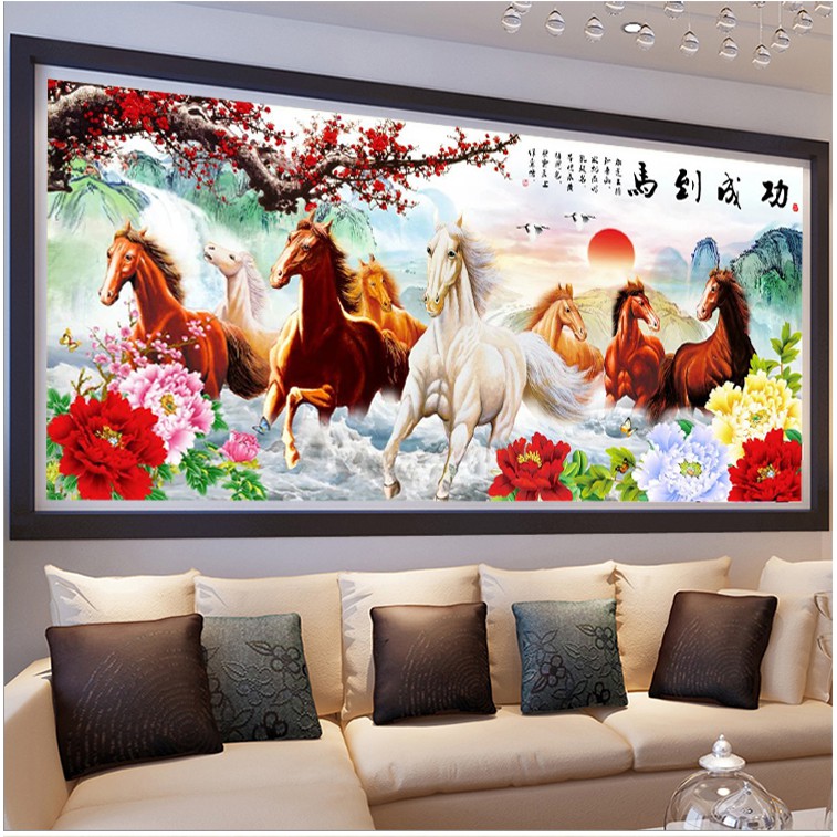 Tranh thêu chữ thập mã đáo thành công>>>LƯU Ý: có loại chỉ thường và chỉ lụa. Quý khách vui lòng chọn lựa chính xác.