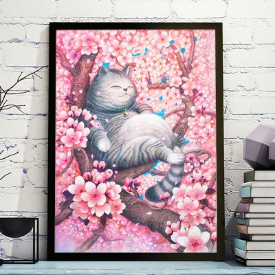 Sở thích & Sưu tầm > Dụng Cụ May Vá || Tranh thêu chữ thập chỉ lụa mèo cầu tài hoa anh đào MDW0605Còn hàng