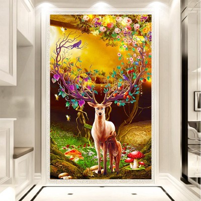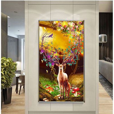 Tranh thêu chữ thập chỉ lụa nai tài lộc tình mẫu tử 2019