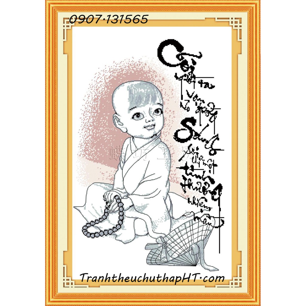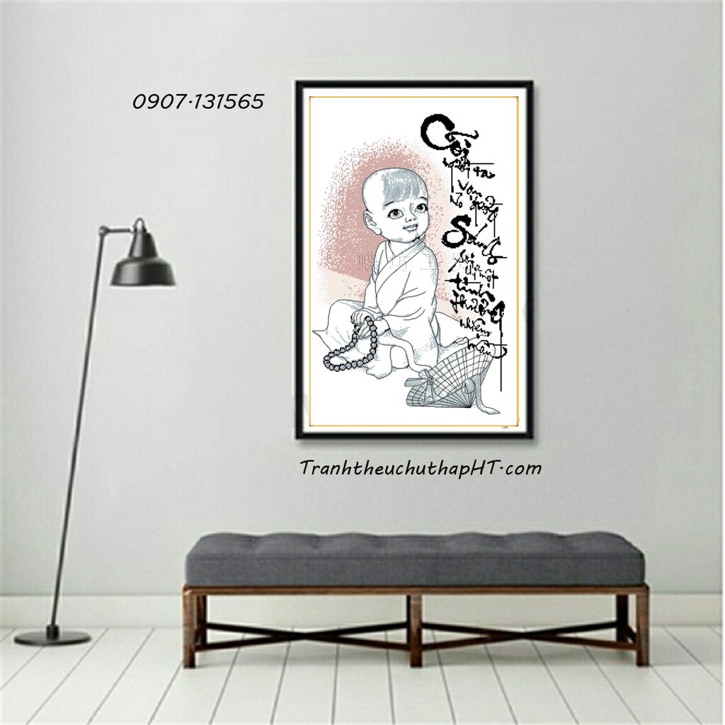 Tranh thêu chữ thập chú tiểu thư pháp cực dễ thương 222122 - tự thêu