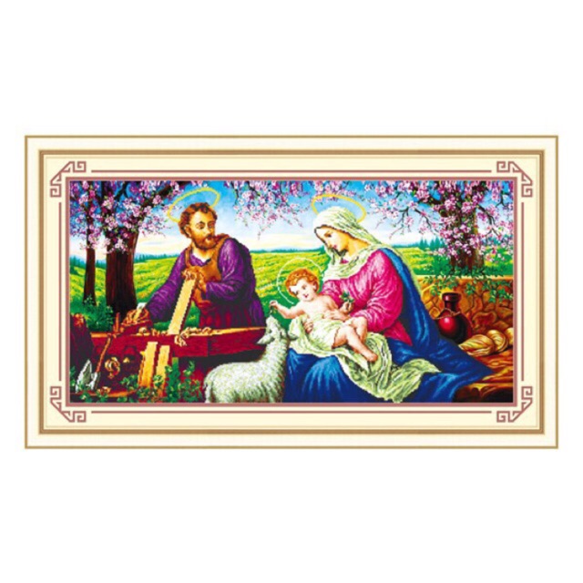 Sở thích & Sưu tầm > Dụng Cụ May Vá || Tranh thêu chữ thập chưa thêu 5D Gia Đình Thánh Gia (83x41)Còn hàng