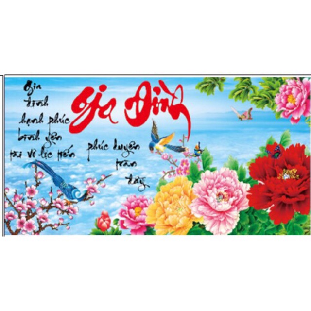 Sở thích & Sưu tầm > Dụng Cụ May Vá || Tranh thêu chữ thập chưa thêu có kết hạt và bướm nhựa Gia Đình Hạnh Phúc Bình Yên X8059Còn hàng
