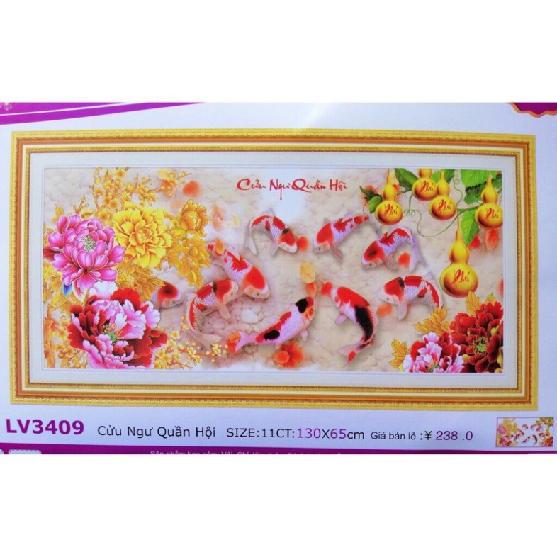 Tranh thêu chữ thập Cửu Ngư Quần Hội LV3409 (130x65) chưa thêu