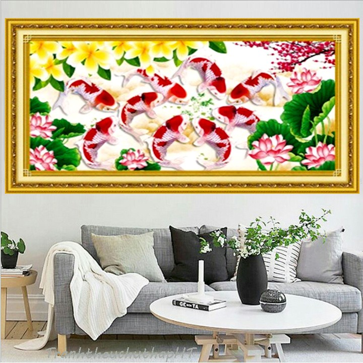 Tranh thêu chữ thập Cửu ngư quần hội LV3275 - tự thêu