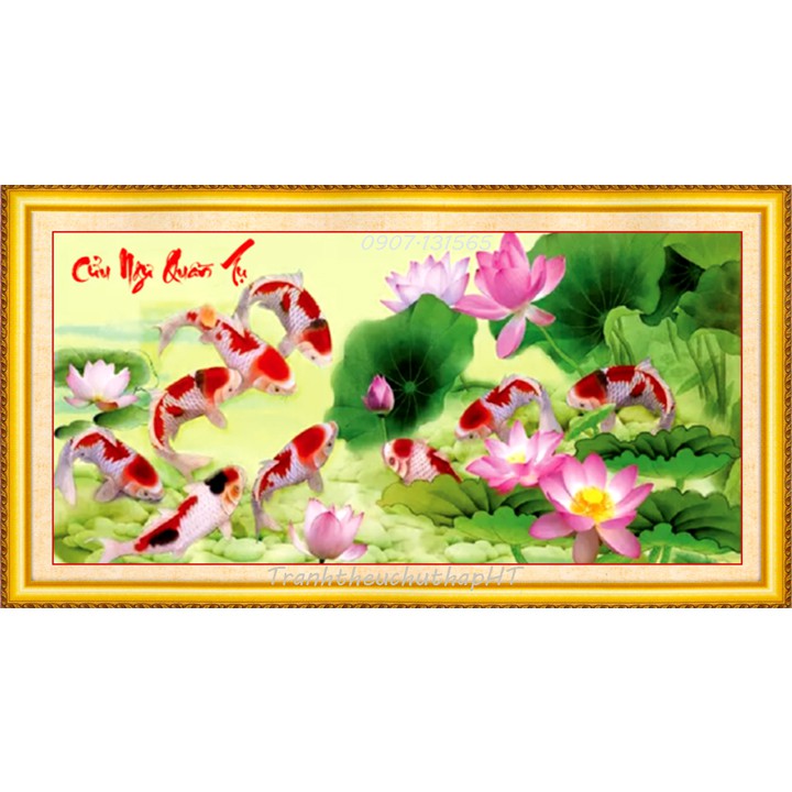 Tranh thêu chữ thập Cửu ngư quần tụ LV3203 - tự thêu