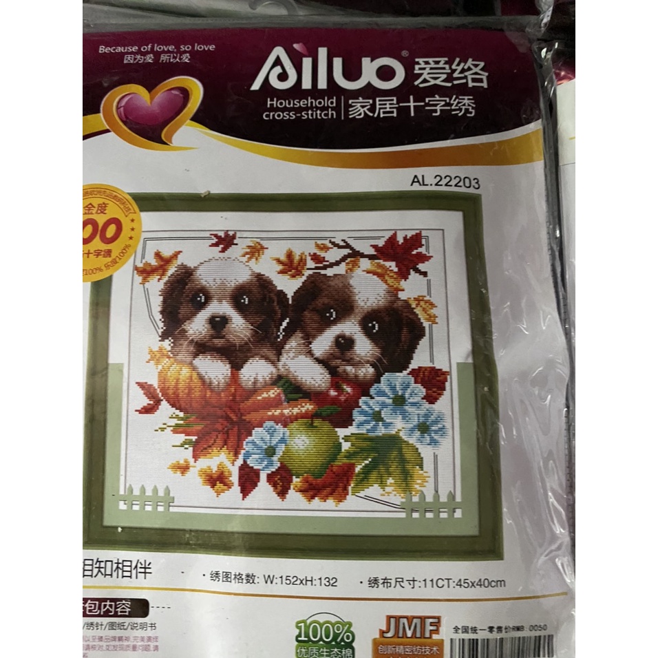 Giới thiệu Tranh thêu chữ thập Đôi Chó Dễ Thương 22203 (45x40) chưa thêu