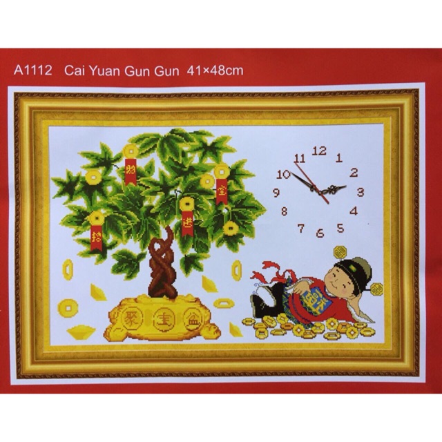 Giới thiệu Tranh thêu chữ thập Đồng Hồ Thần Tài A1112 (41x48cm) chưa thêu