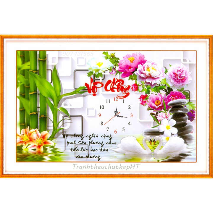 Giới thiệu Tranh thêu chữ thập đồng hồ vợ chồng LV3144 - tự thêu