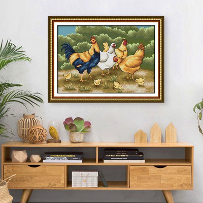 Sở thích & Sưu tầm > Dụng Cụ May Vá || Tranh thêu chữ thập Gà săn mồi Chickens foraging D803 (tranh chưa thêu)Còn hàng
