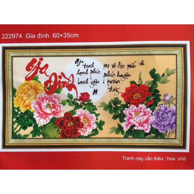 Kích thước sản phẩm: 60x35cm (khách mua về thêu )+Sản phẩm khách mua về tự thêu . Bộ kích nguyên liệu