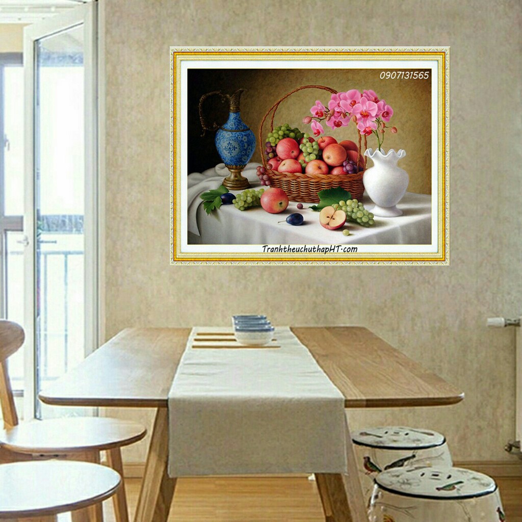 Tranh thêu chữ thập giỏ hoa quả LV3032 - tự thêu