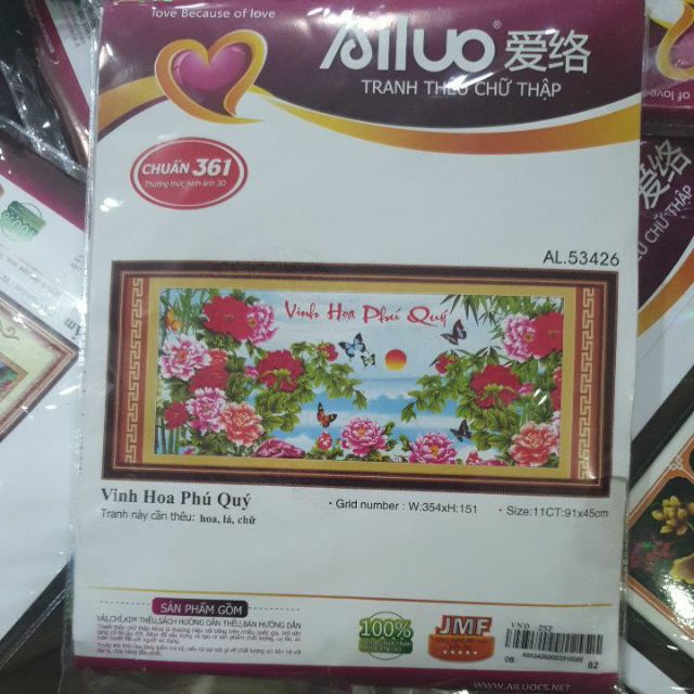 Tranh thêu chữ thập in màu cao cấp in chuẩn 100%, chỉ bóng,đẹp, mịn, bền màu với thời gian, bề mặt vải dày dặn.