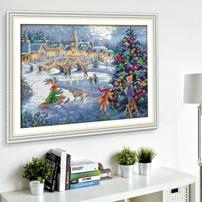 Sở thích & Sưu tầm > Dụng Cụ May Vá || Tranh thêu chữ thập lễ Giáng sinh A Christmas celebration F738 (tranh chưa thêu)Còn hàng