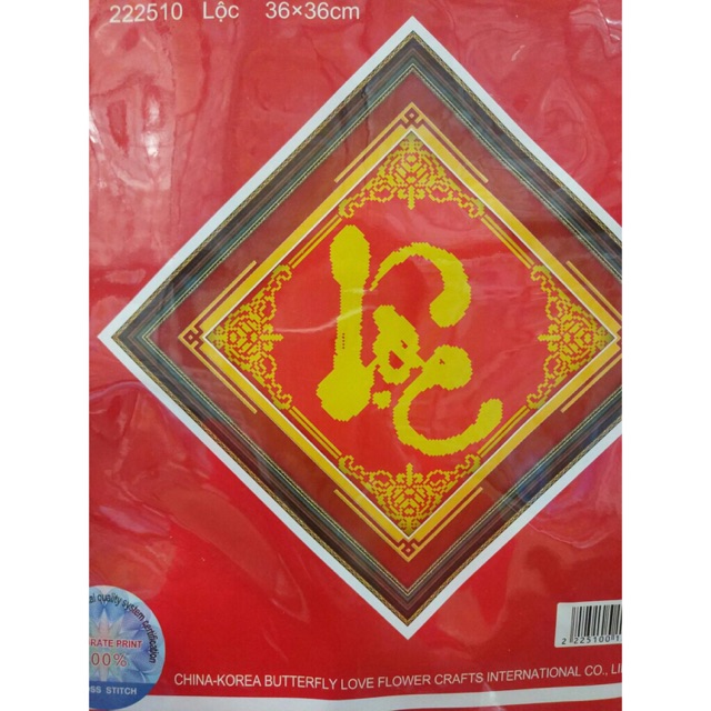 Giới thiệu Tranh thêu chữ thập LỘC (222510) 36x36cm chưa thêu