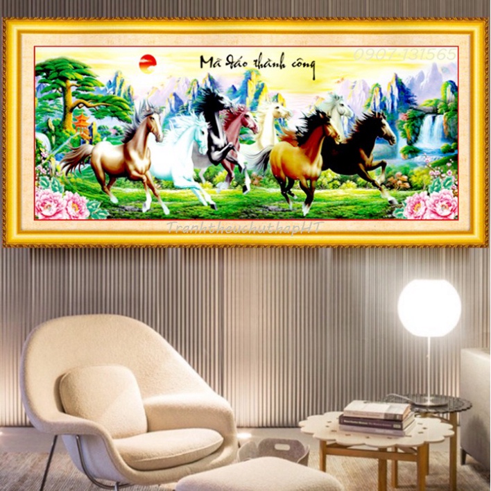 Giới thiệu Tranh thêu chữ thập Mã đáo thành công LV3270 - tự thêu