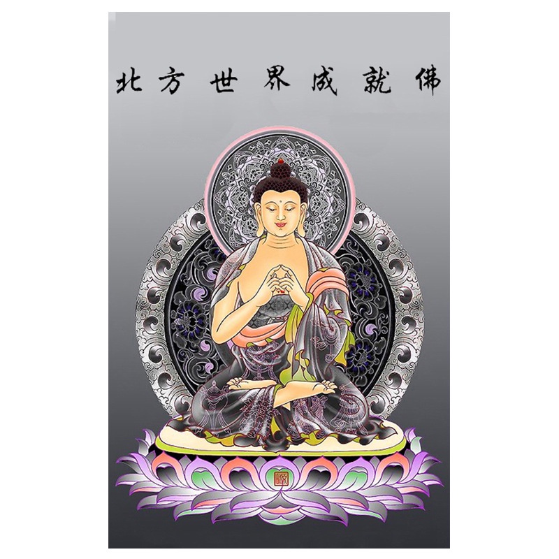 Tranh thêu chữ thập Ngũ phương phật MXR00041. Bắc phương thế giới thành tựu phật