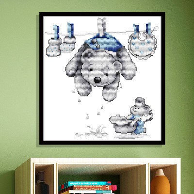 Sở thích & Sưu tầm > Dụng Cụ May Vá || Tranh thêu chữ thập Phơi búp bê màu xanh Dry doll (blue) K427 (tranh chưa thêu)Còn hàng