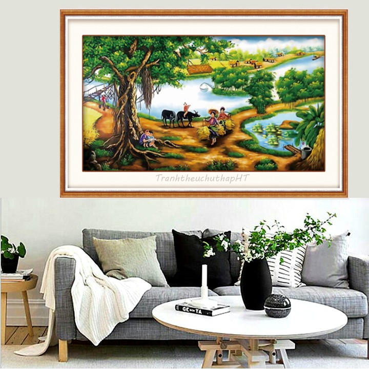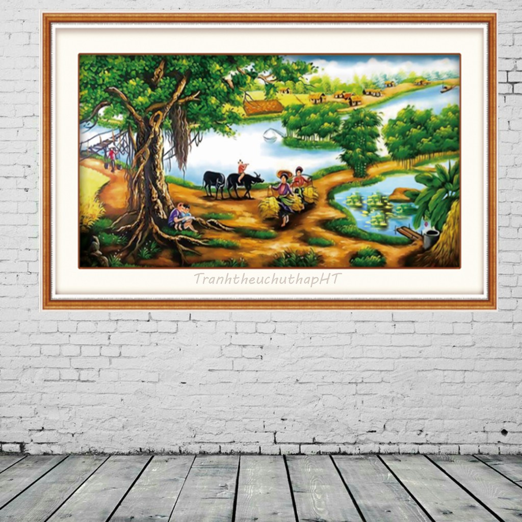 Sở thích & Sưu tầm > Dụng Cụ May Vá || Tranh thêu chữ thập phong cảnh làng quê LV3013- tự thêuCòn hàng