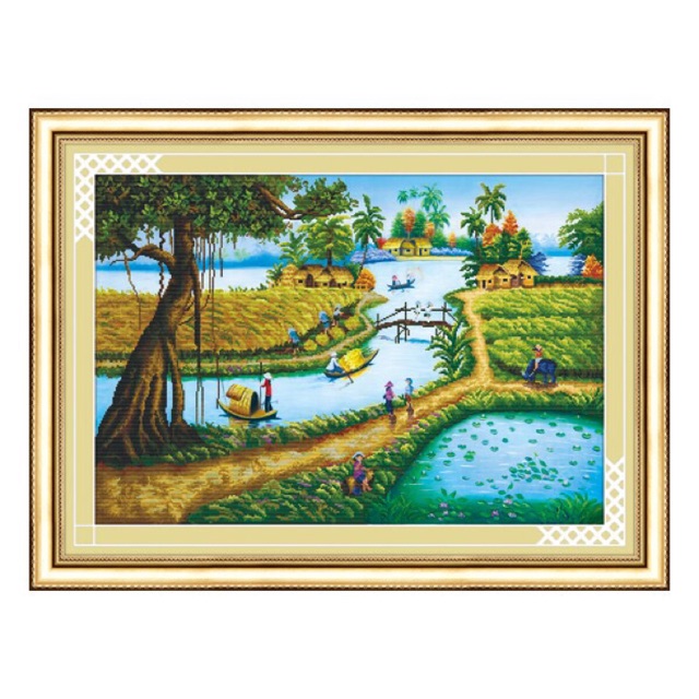 Sở thích & Sưu tầm > Dụng Cụ May Vá || Tranh thêu chữ thập Phong cảnh Làng Quê 53212 (90x65) chưa thêuCòn hàng